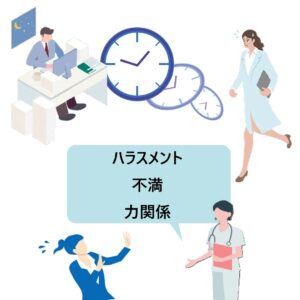 - 小規模な医療機関が多く、職員同士の人間関係が緊密かつ固定化しやすいため、人間関係が労務環境に影響しやすい